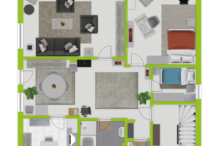 Über das außenliegende Treppenhaus gelangen Sie in die ca. 70 m² große Dachgeschosswohnung. Zu dieser gehören drei Zimmer, ein zeitloses Bad und eine geräumige Küche. Diese ist seit 2017 an einen zuverlässigen Mieter für monatlich 811,- € inkl. Nebenkosten vermietet.